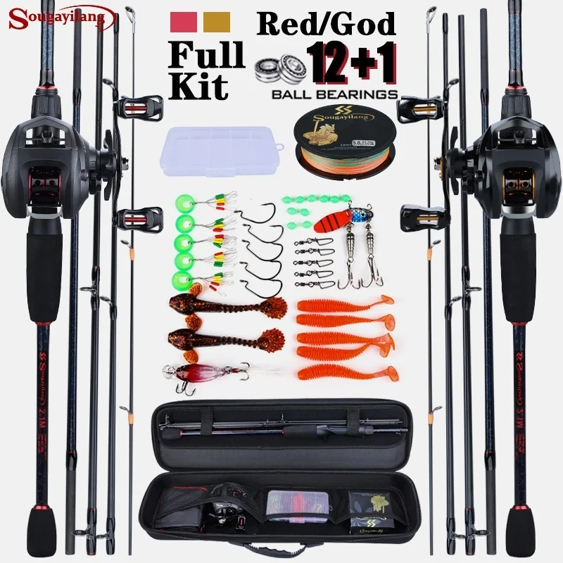Sougayilang приманки, удочки и Катушка Baitcasting 4 карбоновые вставки спиннинг; Удочка; и литья Рыболовная катушка устанавливает Pesca