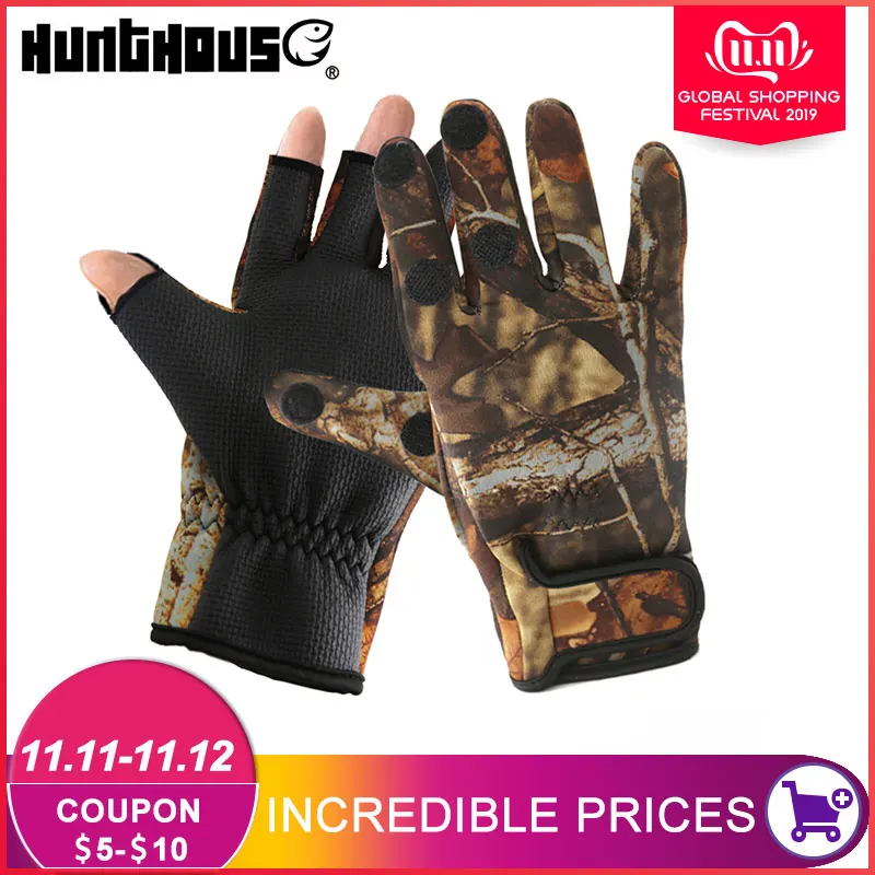 Перчатки для рыбалки, два пальца, неопрен, искусственная кожа, дышащая кожа, Теплые Перчатки для фитнеса, карпа, рыболовные аксессуары, зимни...