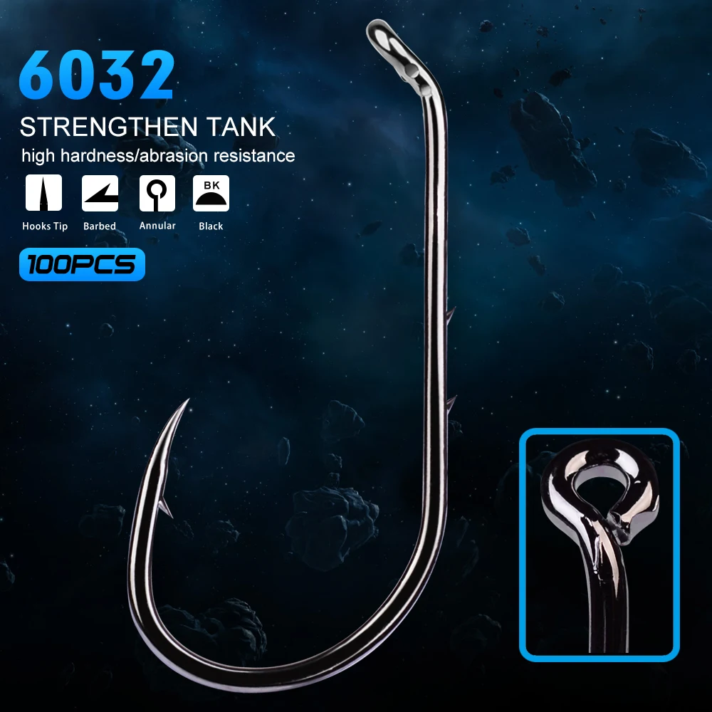 100 шт. Высокое качество рыболовный крючок 1 #-6/0 # рыболовные Крючки BAITHOLDER черный цвет джиг большой одиночный рыболовный крючок
