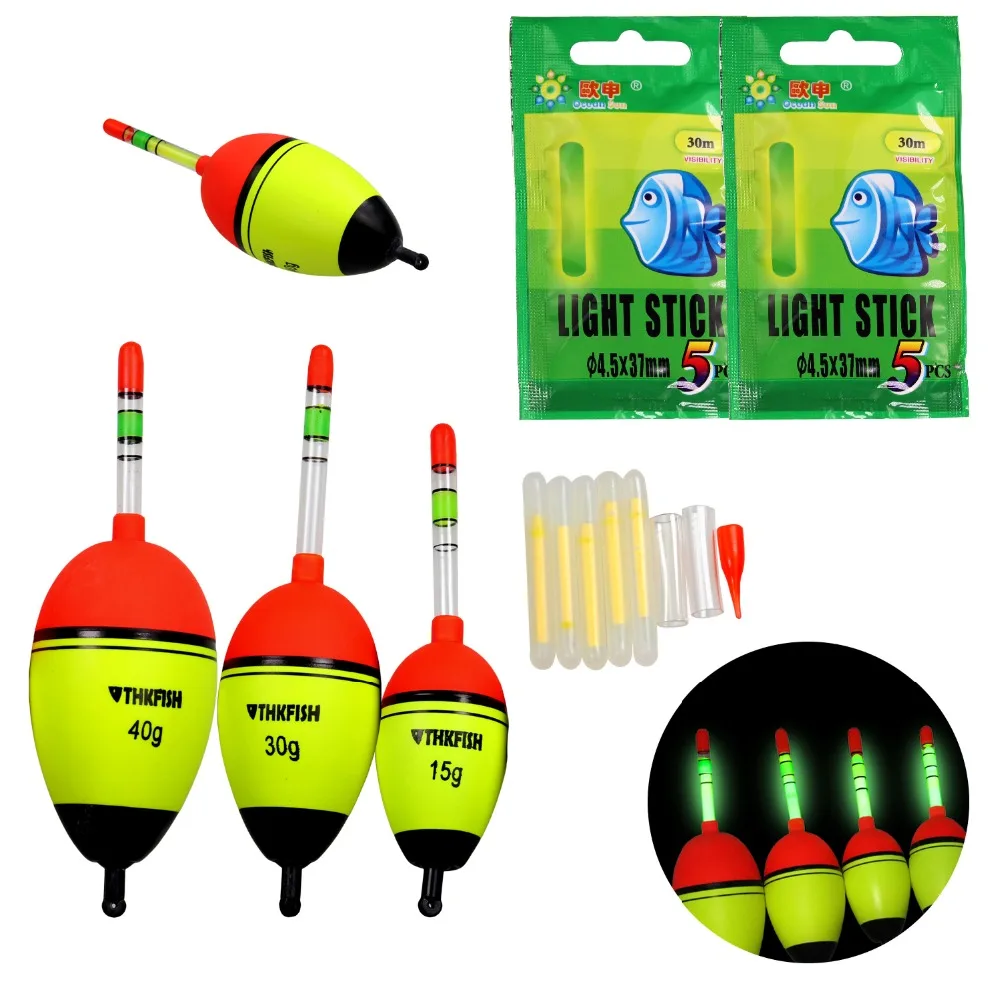 5 шт./компл. 5 г 15 г 30 г 40 г EVA поплавки для рыбалки + 10 шт. химический фонарь, Карп Рыбалка Поплавки Ночная Рыбалка плавающий поплавок Pesca