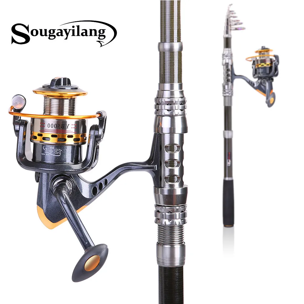 Sougayilang Спиннинг Телескопический комплект удочек и ловли карпа катушке 1,8 м-3,3 m Carbon удочку море литые удочки