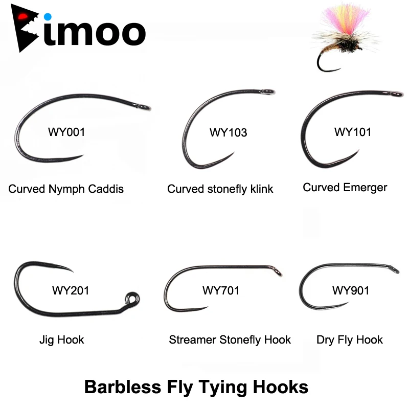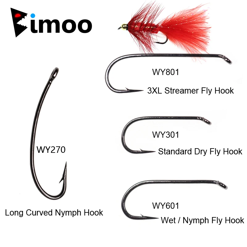 Bimoo 30 шт., черные никелевые Крючки из углеродистой стали, колючие крючки для привязывания, длинные нейлоновые растяжки, сухие, влажные крючки для ловли форели, окуня, рыбалки