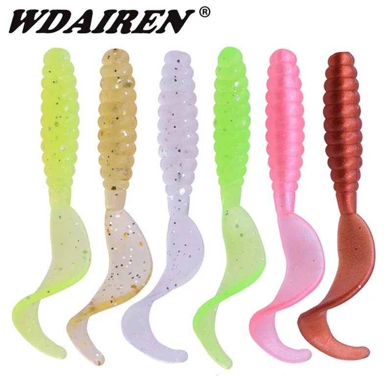 10 шт./партия воблер джиггинг Мягкая приманка с хвостом 55 мм 1,3 г рыболовная приманка мягкие черви креветки силиконовая плавающая мощная прим...