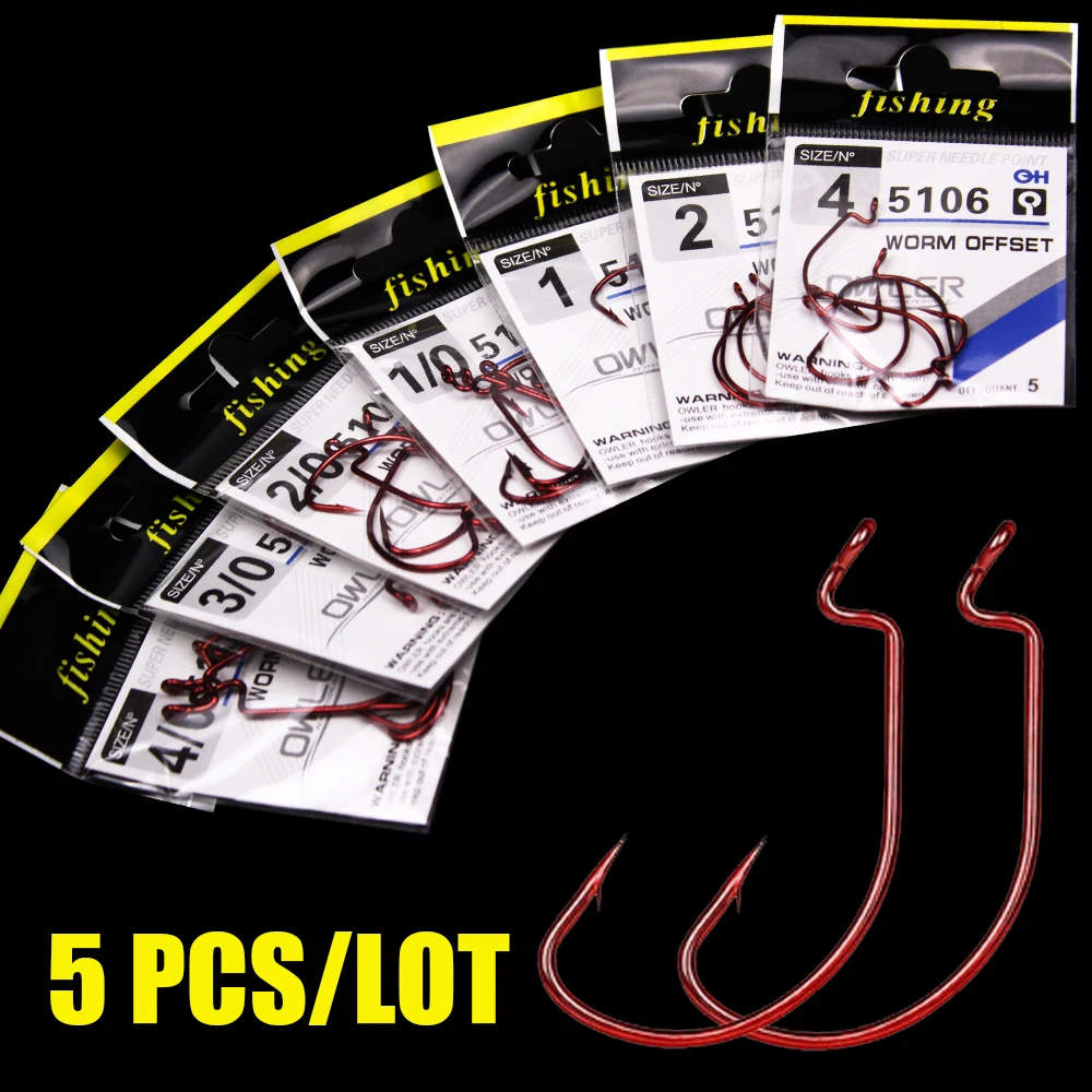 5 шт./партия красные глаза ringed выключатель крючки для Червяков 5/0 #-6 # для хвоста бас карпа владельца