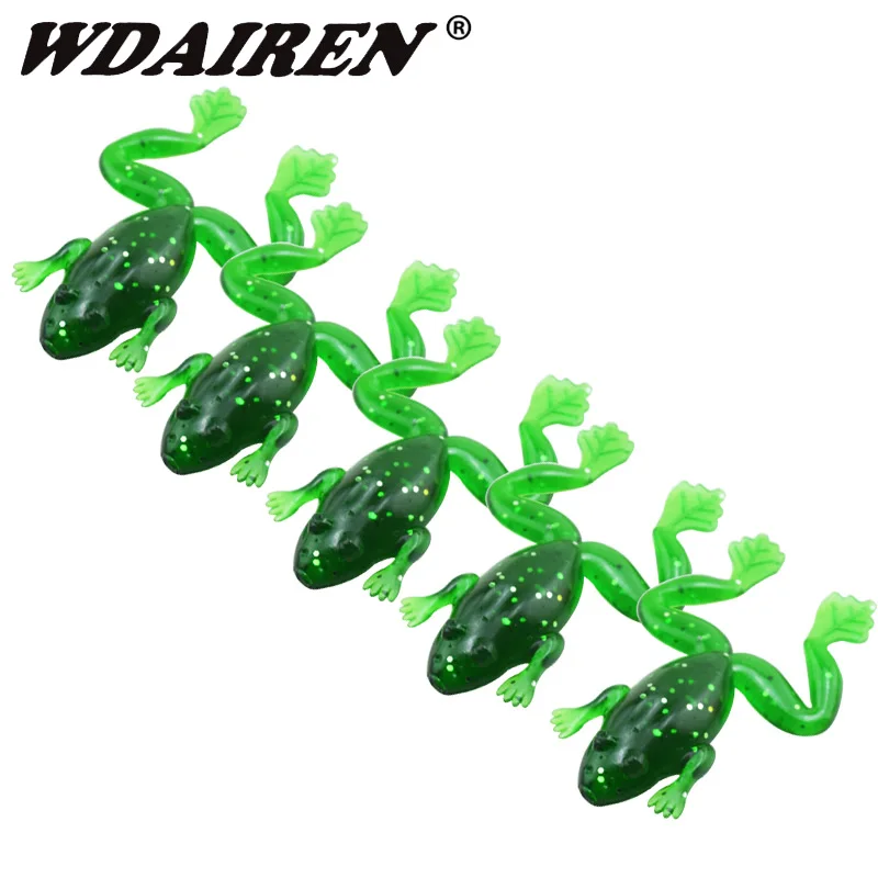 WDAIREN Рыбалка приманки 5 шт./лот качество приманка для рыбы в виде мягкой лягушки для бас 5 см/3 г воблер с 2 Т хвосты Buzz лягушка бас заманить медл...