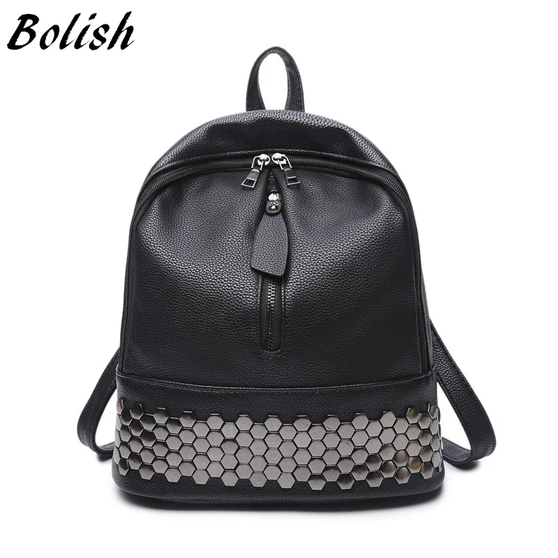 Bolish высокое качество из искусственной кожи Для женщин рюкзак элегантный дизайн школьный рюкзак черный матер женская сумка с заклепками
