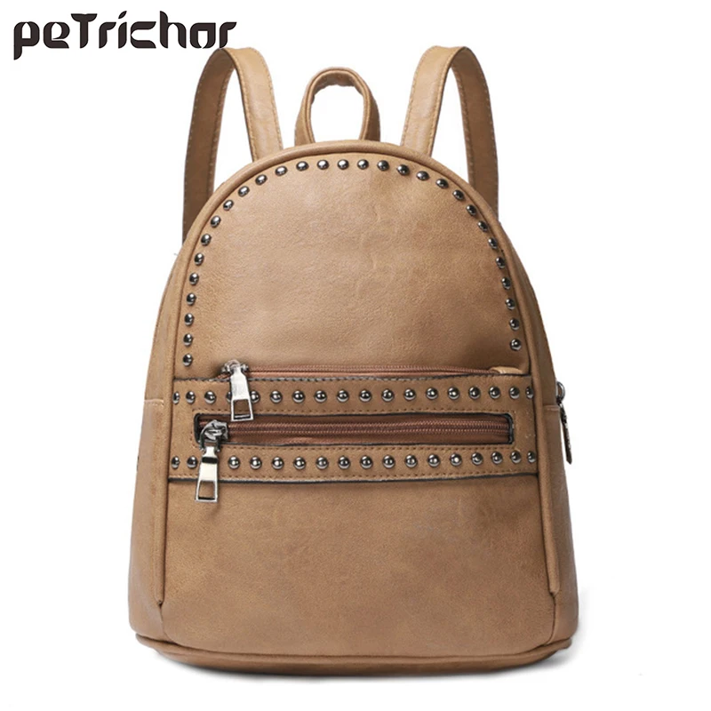 Женский маленький кожаный рюкзак с заклепками черные рюкзаки для девочек-подростков школьный рюкзак высокого качества женская сумка на пл...
