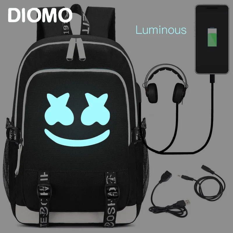 DIMOM Marshmello Световой USB ноутбук рюкзаки 2019 Американский тайна DJ школьная сумка для обувь девочек мальчиков подростков детски