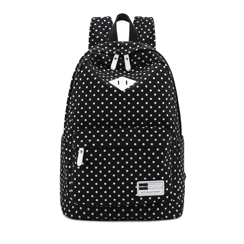 АВГУР холст печати маленькие белые точки рюкзак Для женщин Школьные ранцы для подростков Обувь для девочек милые черные набор Рюкзаки женс...