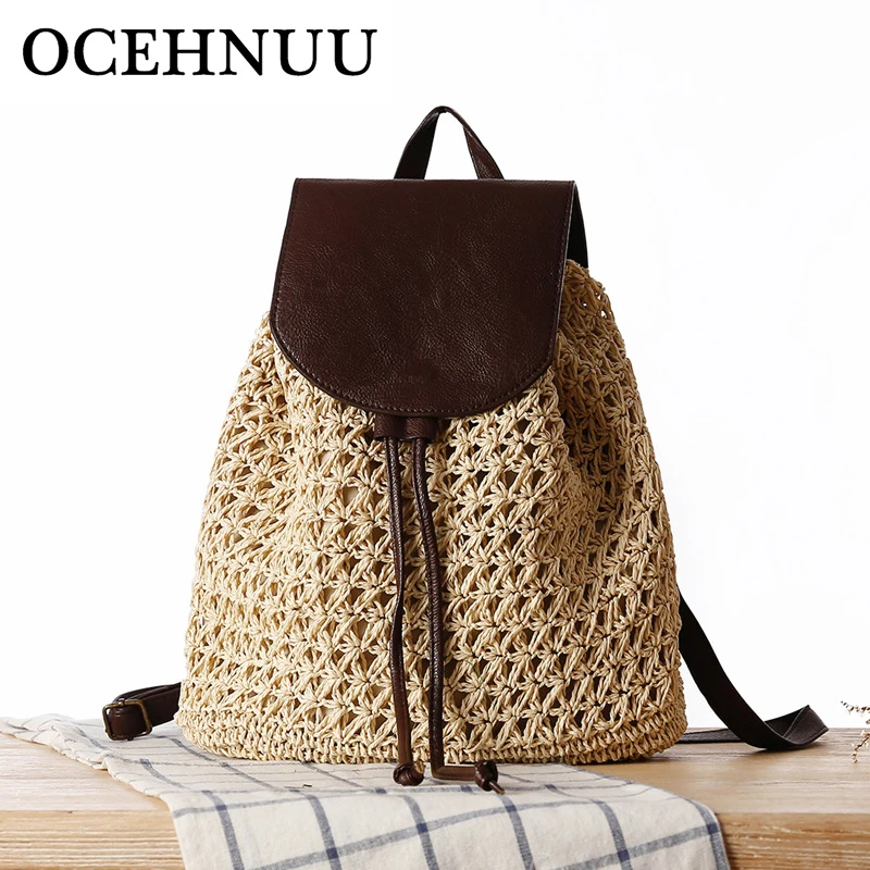 OCEHNUU новые летние пляжные сумки соломы Для женщин сумка рюкзак 2018 отпуск мода ткань маленькие дамы Повседневное рюкзаки сумка для девочек