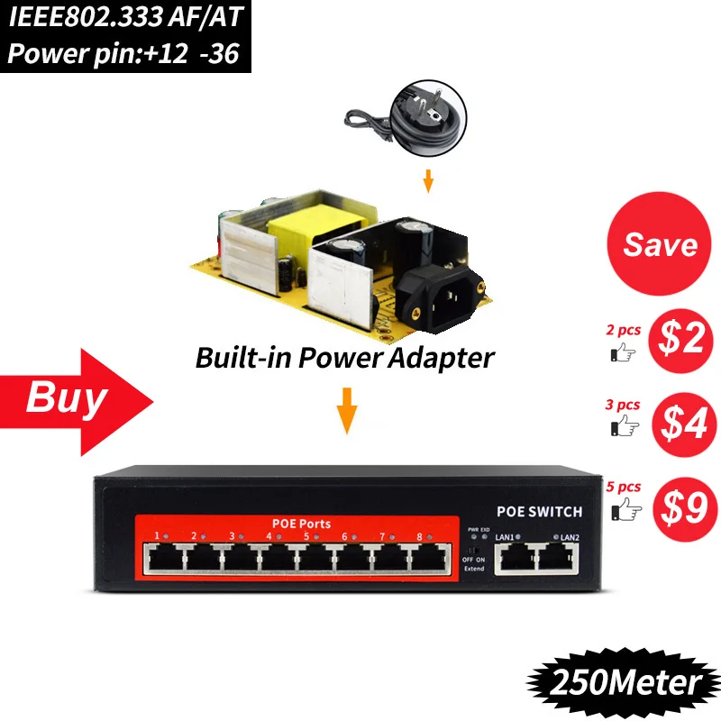 48 V 96 W сетевой переключатель POE Ethernet с 6 RJ45 сети Порты IEEE 802,3 af/на подходит для камеры системы видеонаблюдения/Беспроводной AP