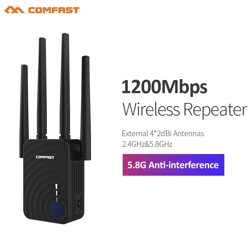 1200 Мбит/с COMFAST беспроводной WiFi расширитель диапазона 2,4/5,8 ГГц двухдиапазонный усилитель сигнала для ретранслятора 4 Ethernet антенны Wi-Fi усилите...