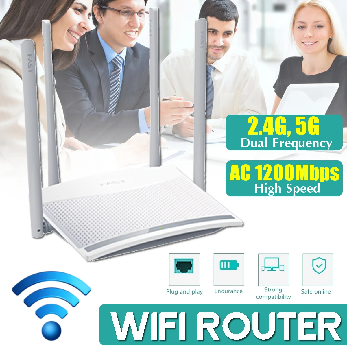Беспроводной маршрутизатор 5G WiFi Gigabit Dual-Band AC1200 с антеннами с высоким коэффициентом усиления 5 * 6dBi более широкое покрытие, простая настройка, управление приложением