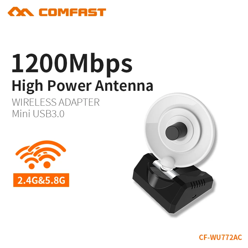 COMFAST Wifi адаптер с высоким коэффициентом усиления 5,8G 1200 Мбит/с двухдиапазонный ПК приемник 10dBi Wi-Fi USB 3,0 антенна Windows 7 8 10 MAC OS CF-WU772AC