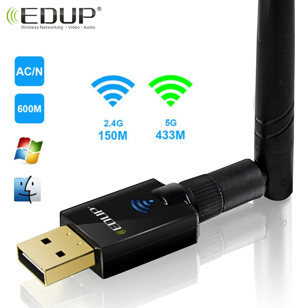 EDUP 5 ГГц usb Wi-Fi адаптер 802.11ac 600 Мбит/с Wi-Fi антенна 6dbi дальний wifi приемник беспроводной usb Ethernet адаптер для ПК