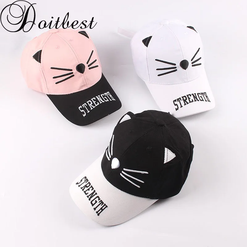 Doitbest от 2 до 7 лет Весна Дети Бейсбол Кепка для мальчиков, девочек вышивка кошка Лето Snapback Регулируемый малыш хип хоп Защита от Солнца кепки