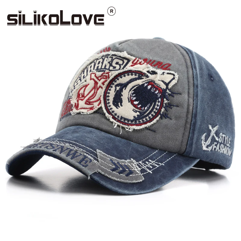 Вышитая Акула джинсовая бейсболка s для мужчин Ретро Стиль регулируемая Женская Солнцезащитная шляпа уличная Кепка для отдыха