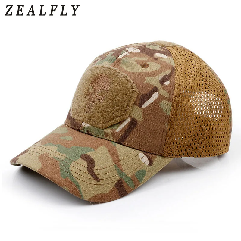 Новинка 2020, бейсбольная кепка с вышитым черепом для мужчин, дышащая сетчатая армейская камуфляжная Мужская кепка, Охотничья камуфляжная кепка для папы