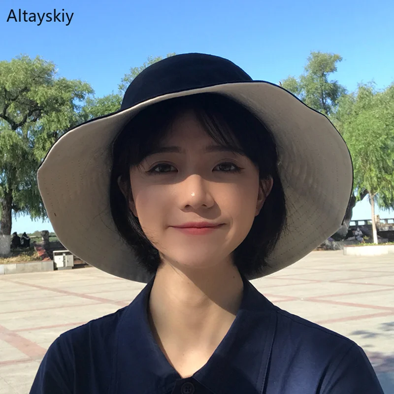 Шапки Женские Новые однотонные солнцезащитные тени летние двухсторонние женские s Hat корейский стиль Универсальные студенческие Kawaii милые ...