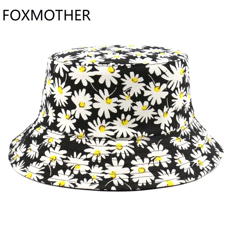 FOXMOTHER Новая мода Открытый Реверсивный черный цветочный узор ромашки рыбацкие шапки ведро шляпы для мужчин женщин Gorras лето