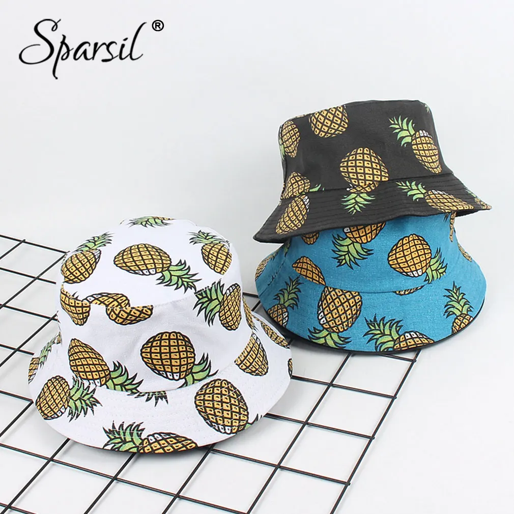Sparsil летняя унисекс пляжная Рыбацкая шляпа парусиновая фруктовый узор двухсторонняя Удобная шапка для отдыха солнцезащитное ведро Chapeau