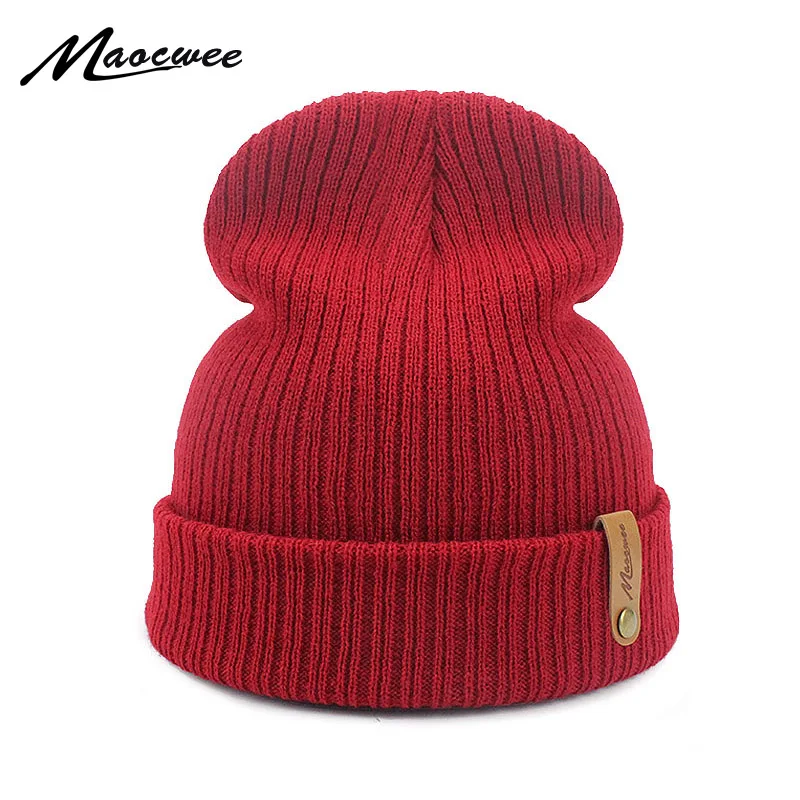 Унисекс Повседневная Шапка-бини s модные вязаные шапки хип-хоп зимние теплые шапочки для мужчин и женщин одноцветные полосатые шапки