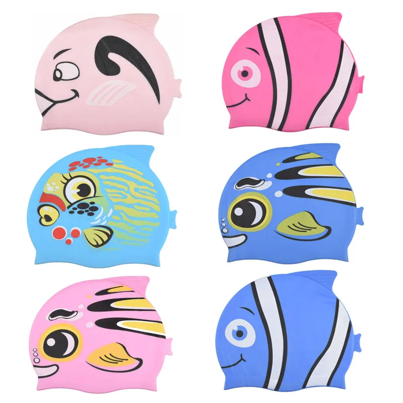 Дети рыба плавание ming cap s мальчики девочки силиконовые водостойкие защита для ушей Дети плавание бассейн cap мультфильм Дайвинг шляпа дропши...