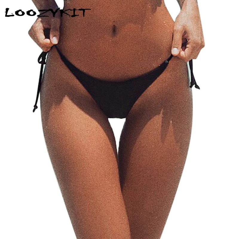 Loozykit Для женщин Sexy Топы Купальники Трусы на шнурках купальные трусики бикини стринги с низкой талией быстросохнущая купальники женские шор...