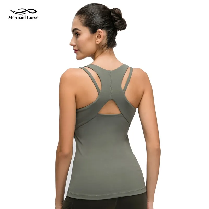 Русалка кривой u-образный вырез предназначен для йоги Топ свободный быть Танк Женская рубашка без рукавов для занятий йогой съемные чашки т...