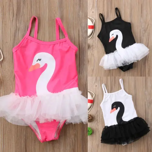 Одежда для малышей для девочек Лебедь цельный Плавание костюм дети мультфильм строка Плавание одежда Плавание костюмы Тюль Плавание Ming ван...