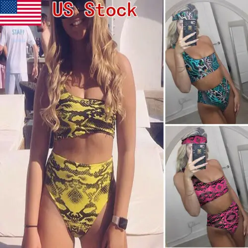 Для женщин цветочный принт комплект бикини Одежда заплыва купальный костюм из двух предметов Пляжный Купальник push up Бикини Купальник бандо...