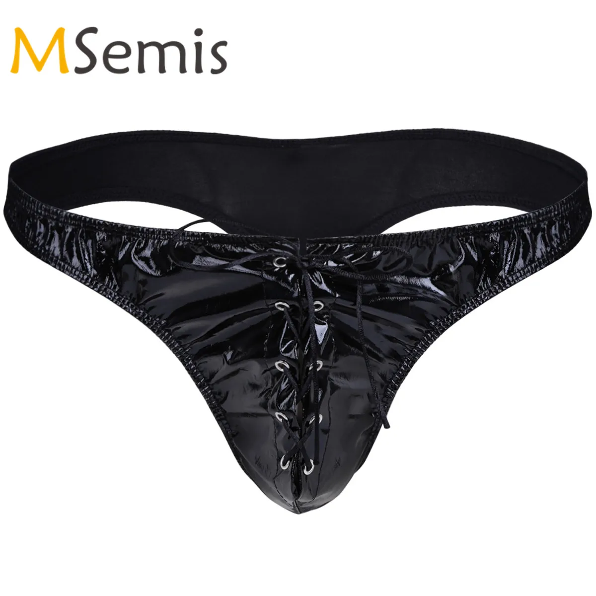 Мужская одежда для купания для геев, купальник, нижнее белье, лакированная кожа, шнуровка спереди, плавки, трусы, стринги, бикини, нижнее бель...