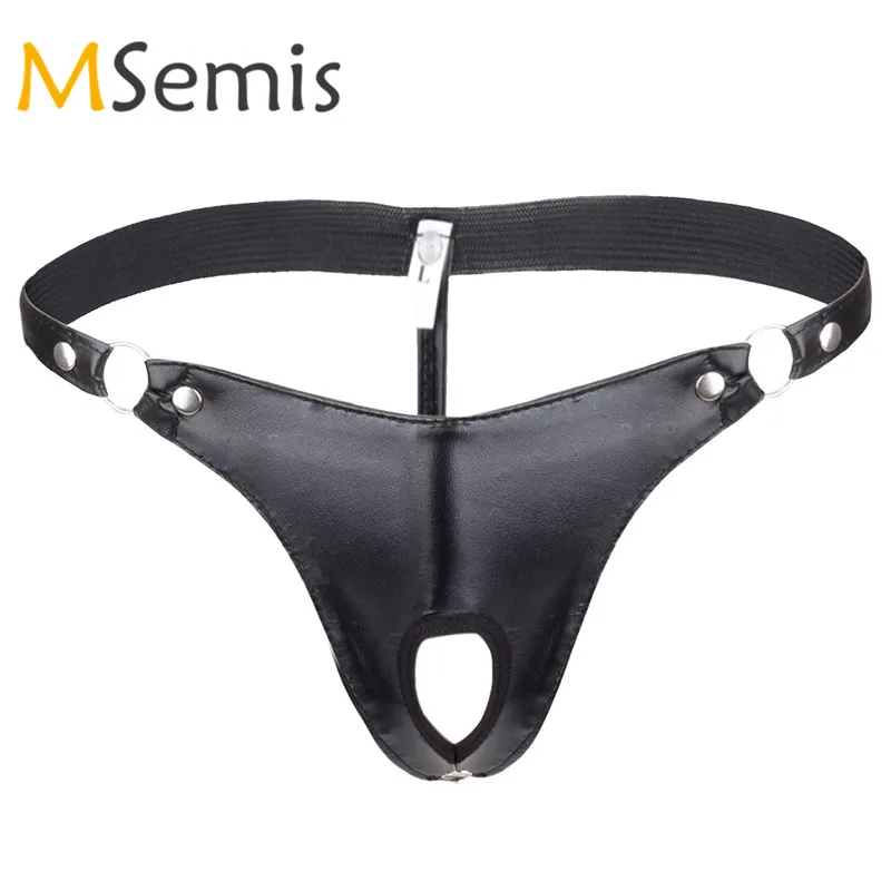 Пикантное мужское белье нижнее белье Лакированная кожа низкой посадкой трусики-Танга бикини с пениса отверстие Гей Мужской нижняя одежда т...