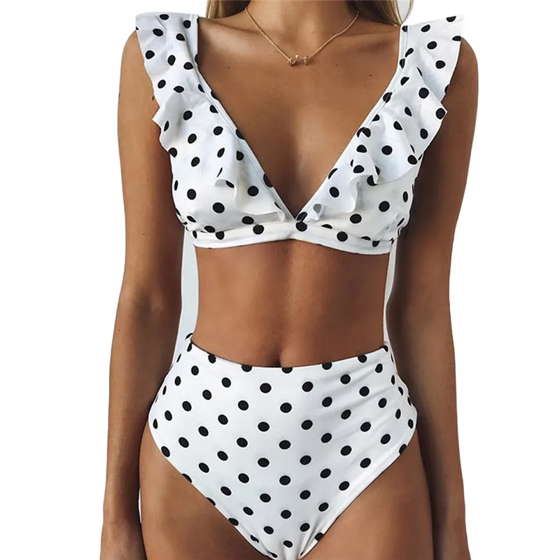 Пикантные Высокая талия в горошек Кружева купальный костюм бикини Разделение купальник с груди Pad Купальники biquini Для женщин Push-Up