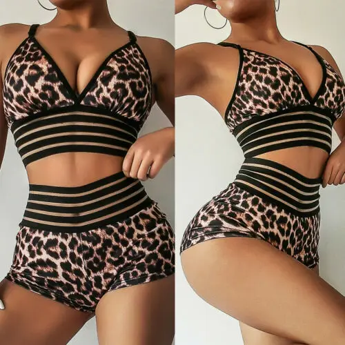 Женский спортивный комплект из 2 предметов с леопардовым принтом для занятий йогой, спортивного зала, фитнеса, бюстгальтера, топов и повседневных горячих штанов, спортивной одежды