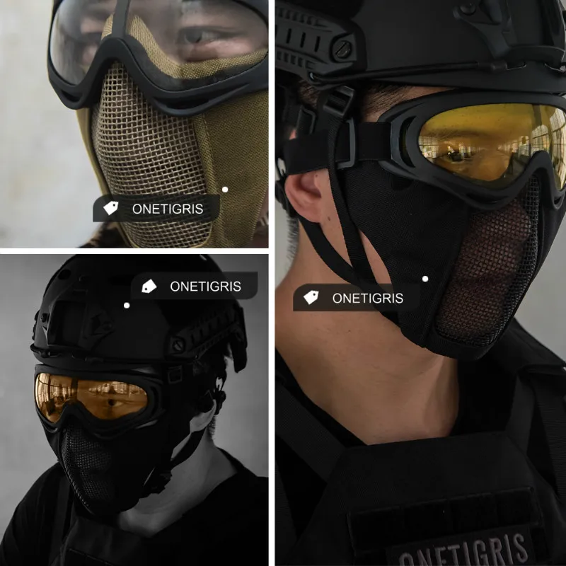 OneTigris тактическая Складная Половина маска для лица Защитная сетка Маска для страйкбола пейнтбол с регулируемым и эластичным ремнем