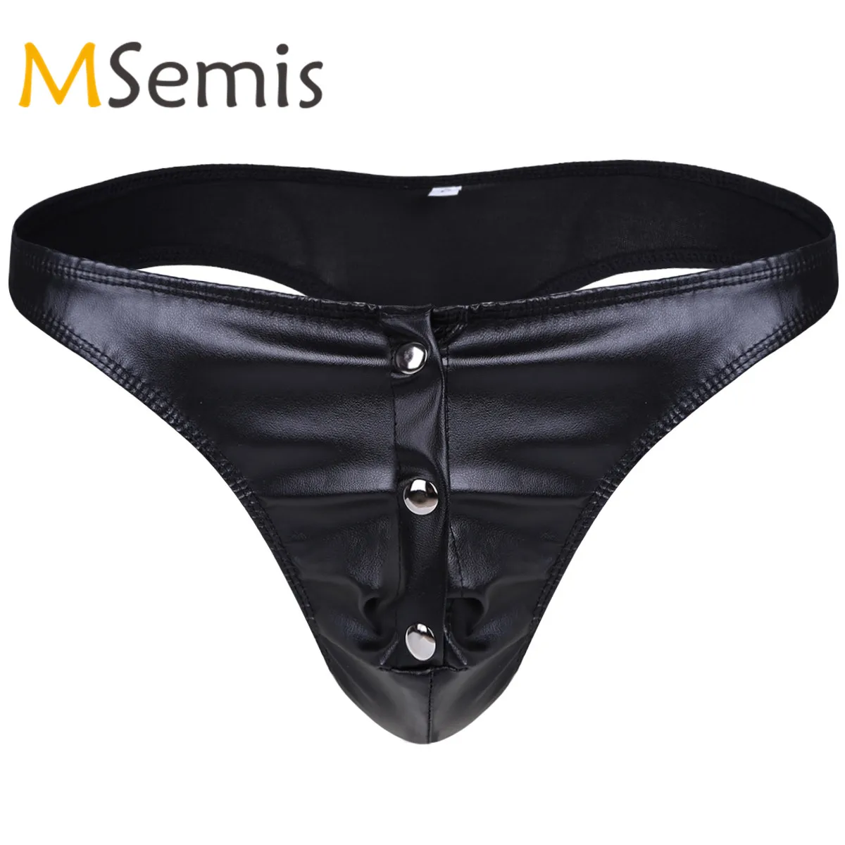 Для мужчин сексуальное нижнее белье Искусственная кожа сетчатый бандаж трусы для геев бикини трусики с Пресс кнопки мужской нижняя одежда