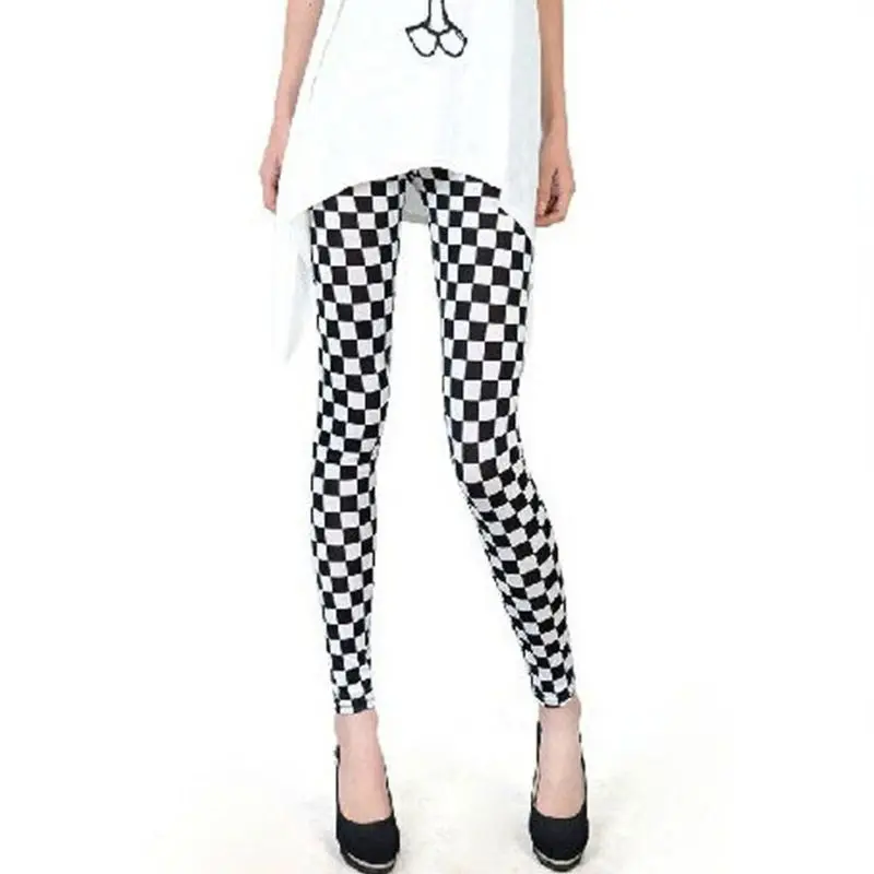 Женские черно-белые клетчатый Леггинсы с принтом, средняя посадка, длина по щиколотку, базовые Утягивающие колготки, повседневные спортивн...