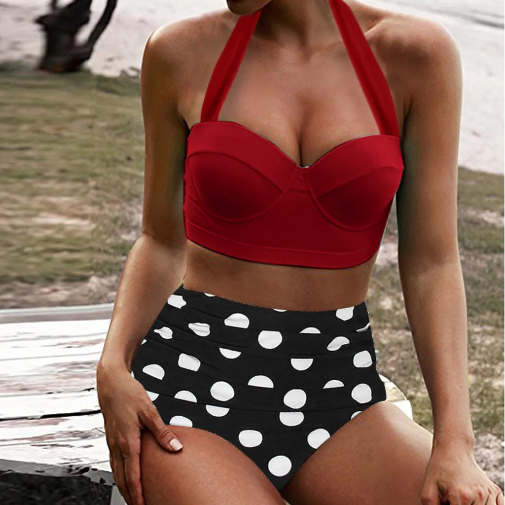Женский купальный костюм 2019 женский бикини с высокой талией купальник женский ретро пляжный бикини набор купальный костюм женский #5