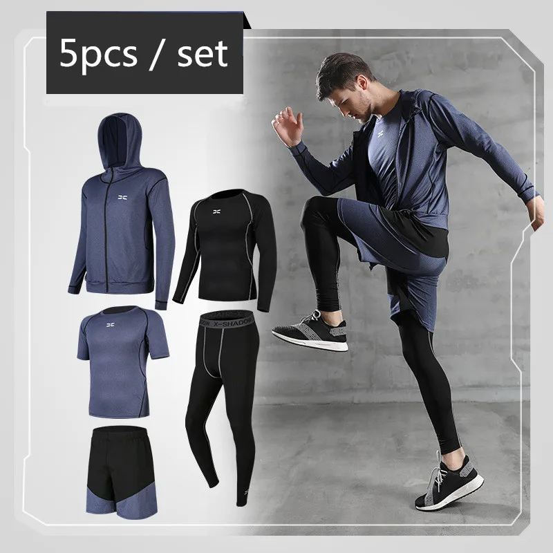 Мужские Компрессионные спортивные костюмы, колготки для тренажерного зала, одежда для тренировок, спортивный комплект для бега, спортивный костюм для бега, сухой крой, большие размеры