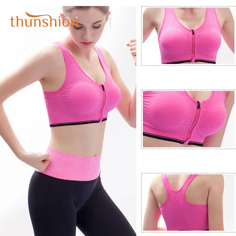 THUNSHION спортивный бюстгальтер Лето 2018 г. Новый Топ для женщин дышащая фитнес, Спорт бюстгальтер для тренировок Молния Закрыть Push Up High Impact жиле...