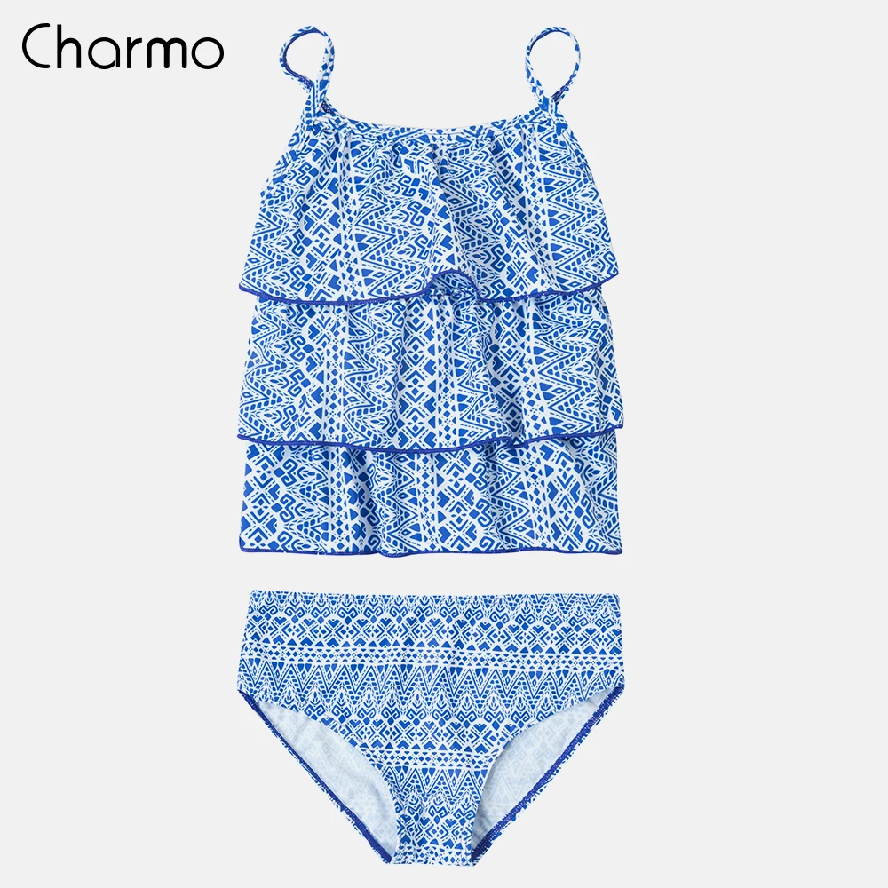 Charmo/комплект бикини для маленьких девочек; комплект из двух предметов; купальники с геометрическим принтом; детский купальник с регулируемым ремешком; пляжная одежда с оборками