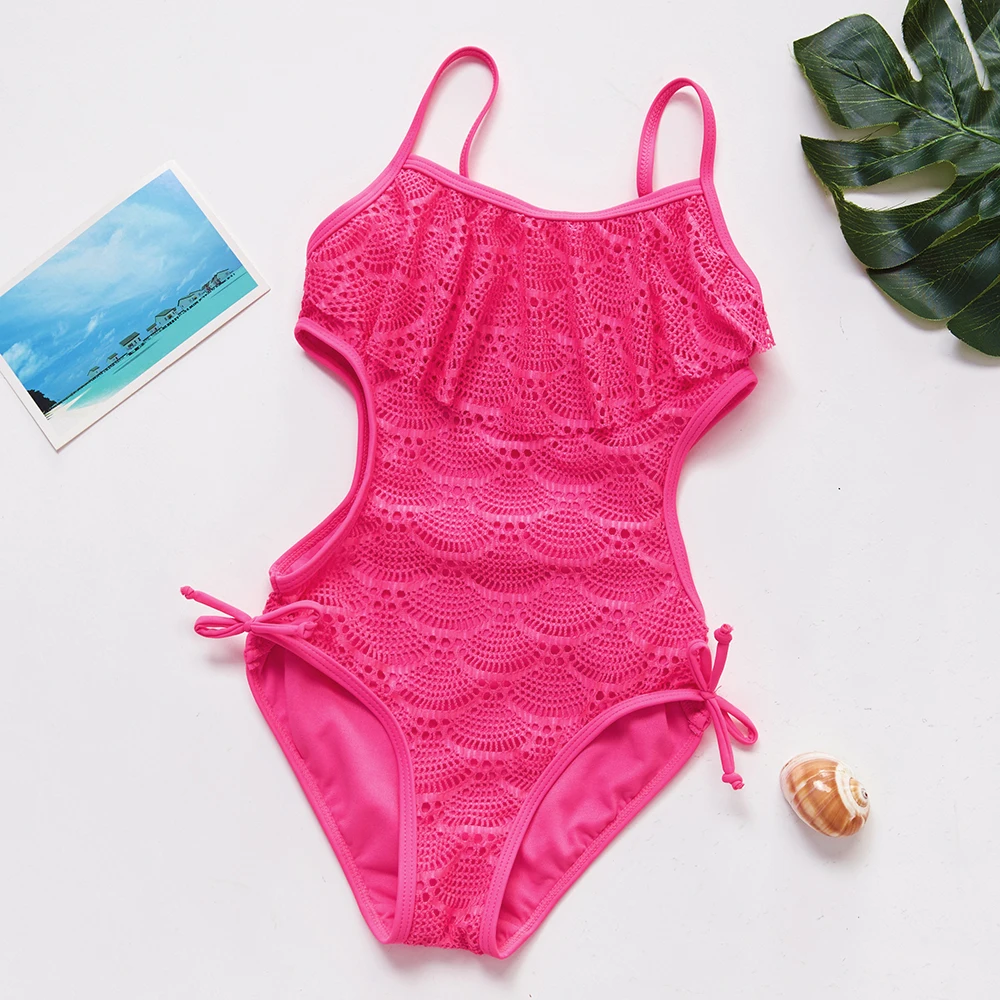 В 2019 году, новый цельный купальник для девочек с изображением фламинго и розовыми оборками от 2 до 8 лет, купальный костюм, пляжная одежда, купальный костюм 9021