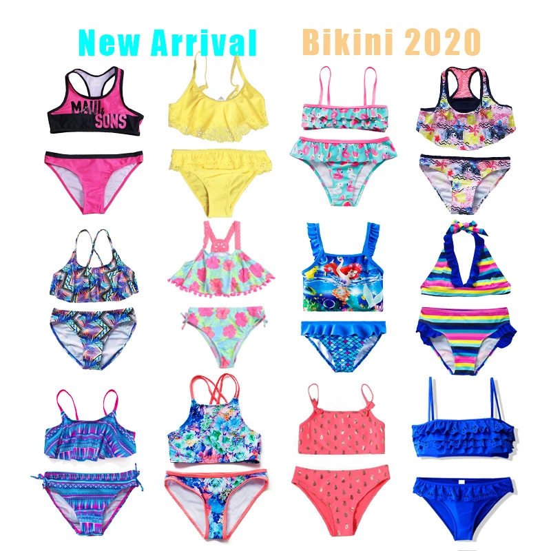 Новинка 2019 года; купальный костюм для девочек; От 2 до 12 лет из двух предметов; детский купальный костюм; бикини; танкини; G50-CZ933