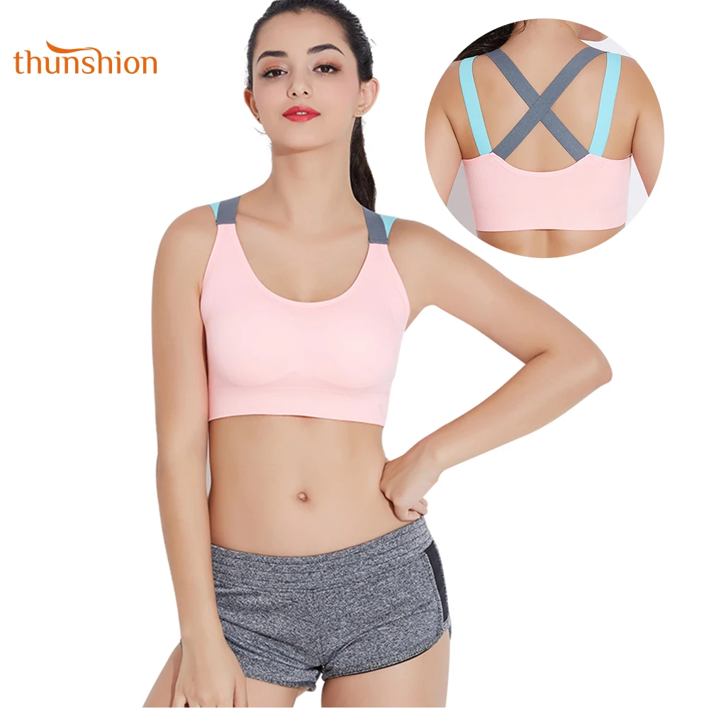 THUNSHION спортивный бюстгальтер женский топ сексуальный крест ремень Push Up High Impact Бег бюстгальтер для фитнеса для йоги для спортзала Топ спорти...