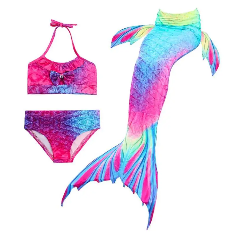 3 шт./компл. горячий Детский купальник-бикини для девочек, набор с хвостом русалки с ребром купальник бикини ванный комплект, платье для дево...