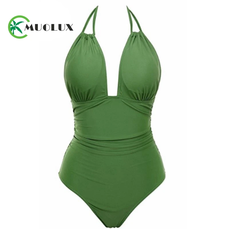 MUOLUX 2019 для женщин Винтаж горошек одна деталь купальники для малышек спинки животик управление Монокини купальник Холтер Push up ванный компле...