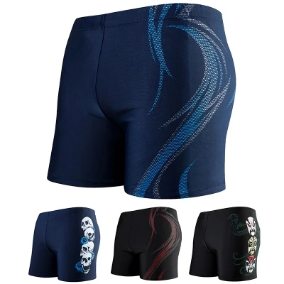 Новый Мужской купальный костюм, летний мужской полосатый купальник с низкой талией, трусы-боксеры с принтом черепа, Пляжные штаны, плавки