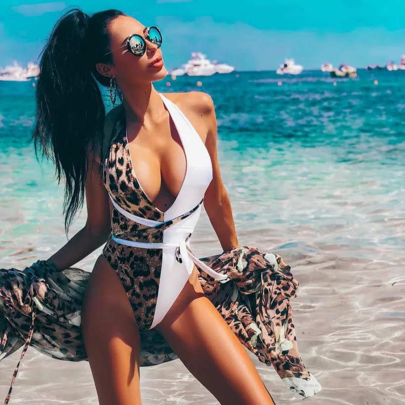 Леопардовый принт V образным вырезом Swimawear женский купальник пуш-ап мягкий женский бикини набор купальников Цельный купальный костюм Монок...
