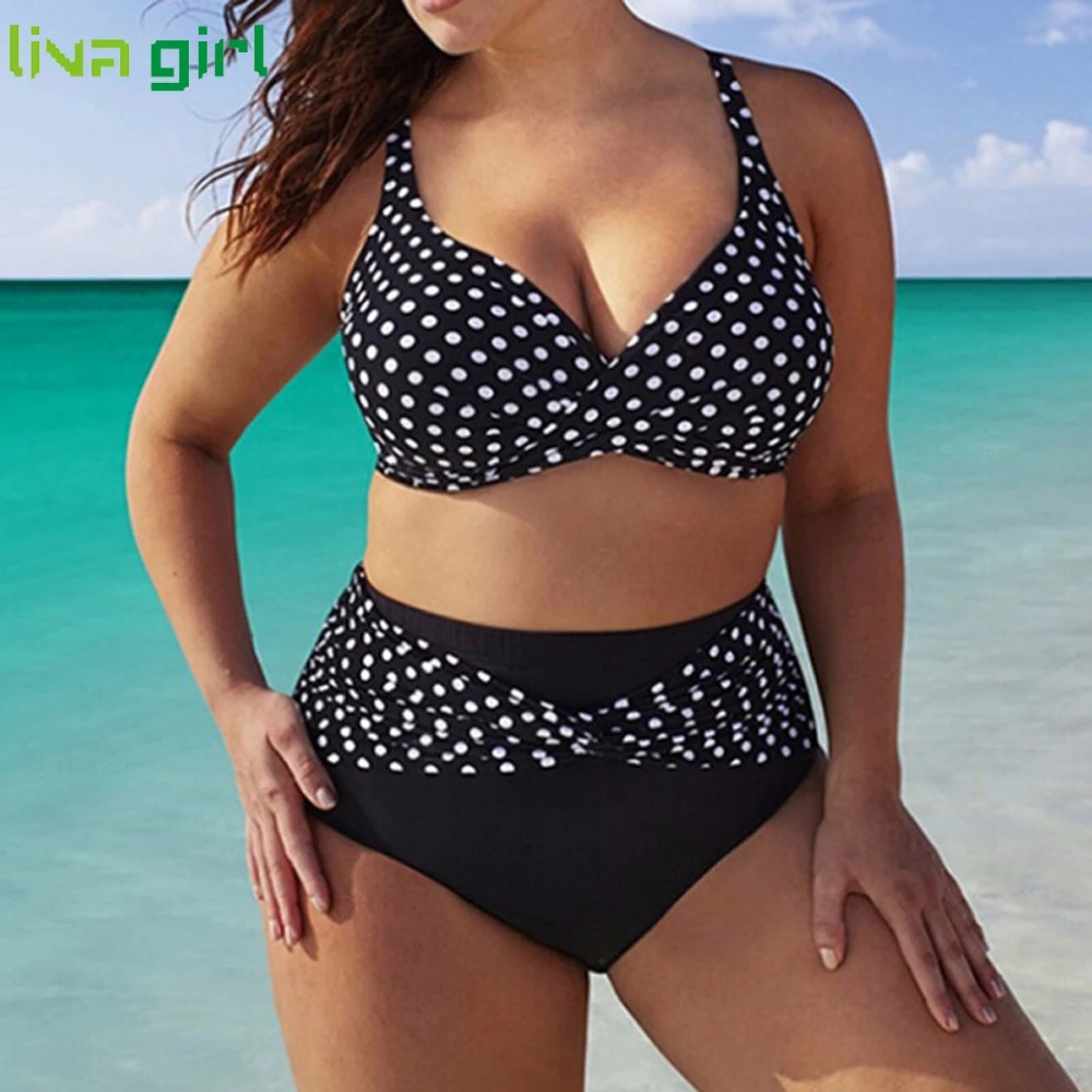 Liva/бикини для девочек, в горошек, размера плюс, два предмета, купальники, мягкий бразильский купальник, популярный комплект, пляжный Монокин...